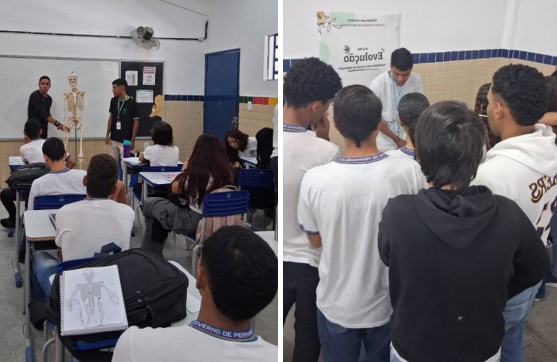 – Aulas teóricas com auxílio de modelos didáticos (como esqueletos, bonecos anatômicos, etc);