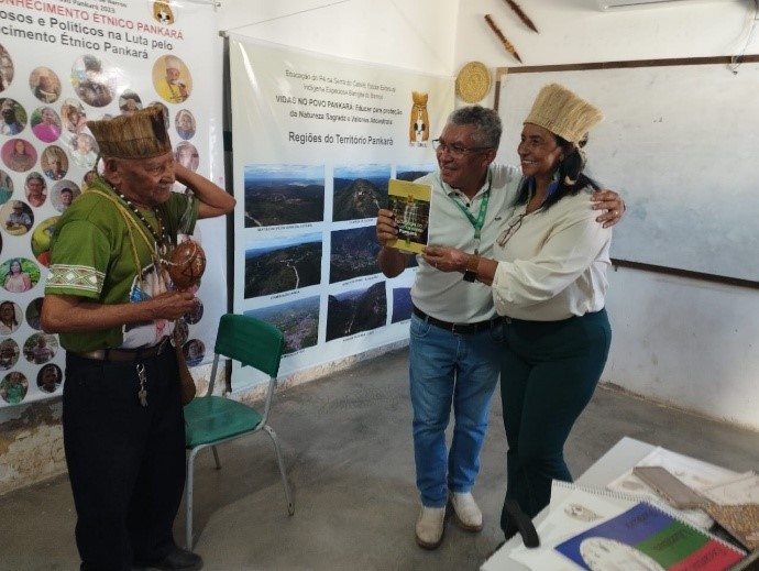 No dia 17 de novembro, integrantes do Pibid/Fafopst, professores e alunos da Fafopst estiveram presentes numa importante atividade: A vivência na Comunidade Pankará no município de Carnaubeira da Penha – PE. Na ocasião, tivemos a oportunidade de conhecer a comunidade, suas lideranças e pessoas, além da escola índigena. No roteiro, foi visitado lugares considerados sagrados para o povo Pankará. Após realizarmos a trilha histórica, ambiental e cultural, fomos recpecionados na escola da comunidade pela liderança Fernanda Pankará, coordenadora do estabelecimento escolar. Nela, conhecemos a estrutura física, regimento e a documentação escolar, materiais didáticos, projetos em andamentos. Um dos momentos mais emblemáticos foi a roda de conversa com o Pajé Sr. Manoel Pankará e a Cacique Luciete Pankará. Nesse momento podemos escutar e aprender as histórias e cantos sobre a trajetória do povo Pankará, seus aspectos culturais e de luta da comunidade ao longo do tempo. Ainda nesse percurso, tivemos a oportunidade de assistir as apresentações pedagógicas dos professores e alunos índígenas da escola. O evento teve como objetivo socializar as ações pedagógicas, artísticas e ciêntificas realizadas pela escola Índigena ao longo do calendário letivo. Algo ainda bastante elucidativo foi a presença da comunidade para prestígiar as atividades, com a presença de familiares, amigos e vizinhança. Para nós do Pibid, este evento significou um momento de profícuas aprendizagens e compreensão sobre como funciona uma escola índígena no seu cotidiano, as suas diretrizes e função social. Essa ação integrada vai de encontro com os principios do Pibid que preza por uma educação democrática e em respeito à diversidade. Assim, pudemos vivenciar o que de fato significa uma educação decolonial, ensinadora de importantes fazeres e sabres para sociedade geral.