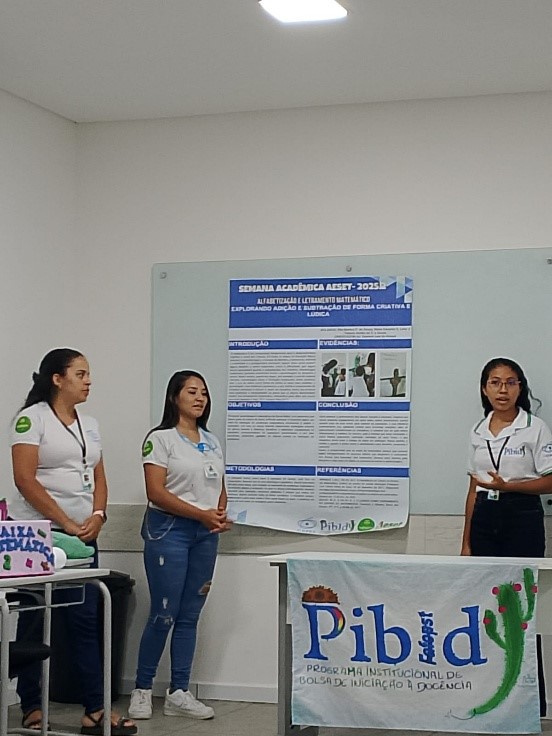 A semana acadêmica da Autarquia Educacional de Serra Talhada foi abrilhantada com a participação dos alunos bolsistas do PIBID, que apresentaram experiências exitosas referentes as práticas vivenciadas no ano letivo de 2025. A temática geral do núcleo de pedagogia é Letramento Matemático, um tema de grande relevância, pois em muito tem contribuído com o desenvolvimento e melhores resultados dos estudantes das escolas públicas municipais da cidade de Serra Talhada, que são favorecidos com o PIBID. Os bolsistas apresentaram projetos relacionados a macro temática: