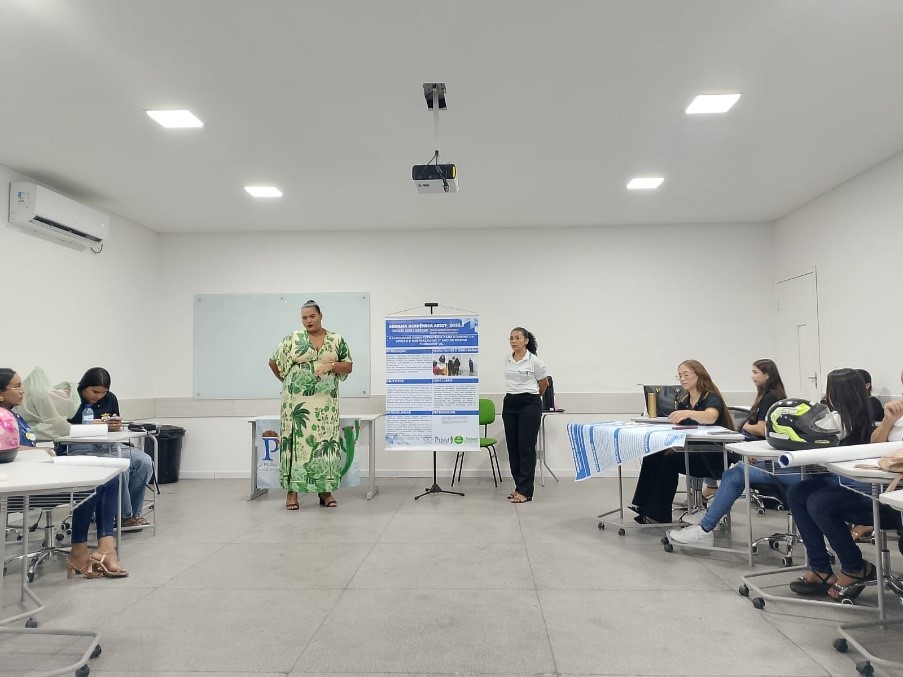 As alunas bolsistas do núcleo do PIBID de pedagogia apresentaram interessantes as ações no evento acadêmico da IES.