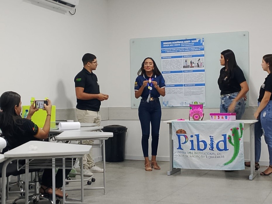 A semana acadêmica da Autarquia Educacional de Serra Talhada foi abrilhantada com a participação dos alunos bolsistas do PIBID, que apresentaram experiências exitosas referentes as práticas vivenciadas no ano letivo de 2025. A temática geral do núcleo de pedagogia é Letramento Matemático, um tema de grande relevância, pois em muito tem contribuído com o desenvolvimento e melhores resultados dos estudantes das escolas públicas municipais da cidade de Serra Talhada, que são favorecidos com o PIBID. Os bolsistas apresentaram projetos relacionados a macro temática: